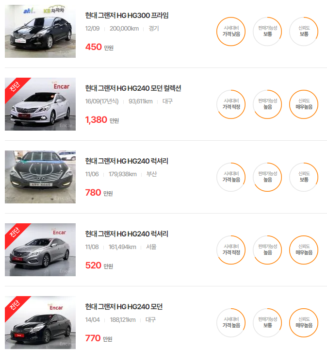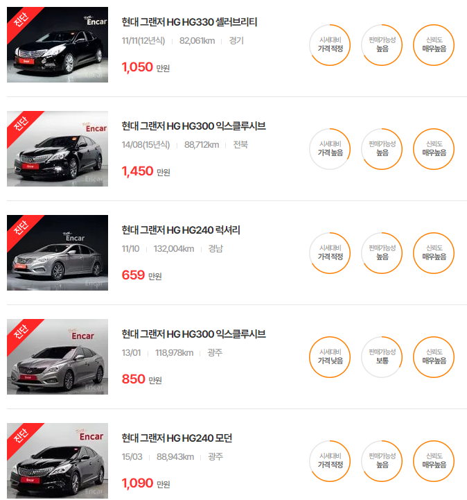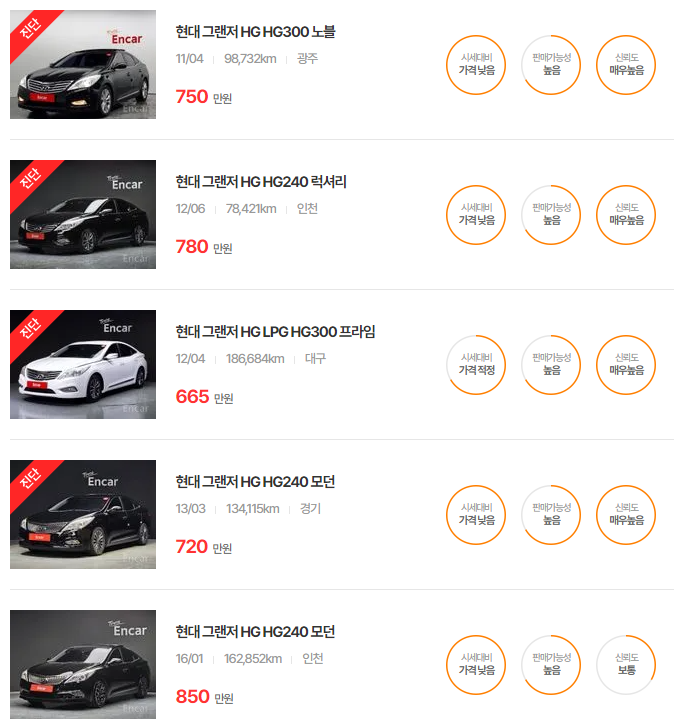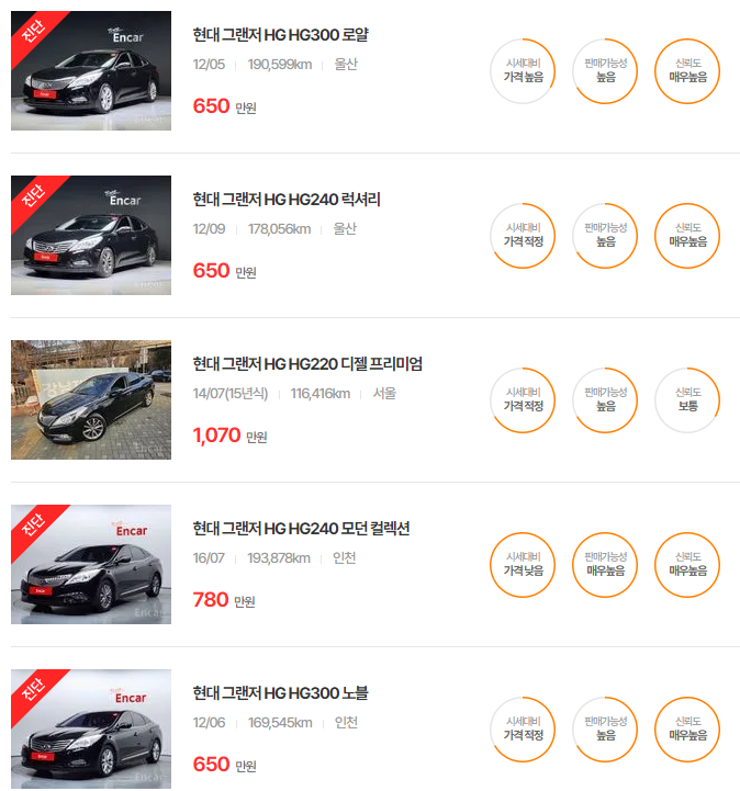 더 럭셔리 그랜저는 높은 내구성과 합리적 가격으로 중고차 구매 시 초보 운전자에게 인기가 있는 모델입니다.
