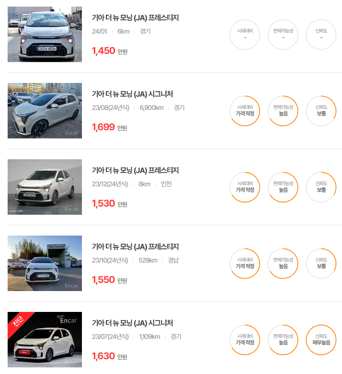 - 2024년식: 1,475~1,534만원 K Car 실매물