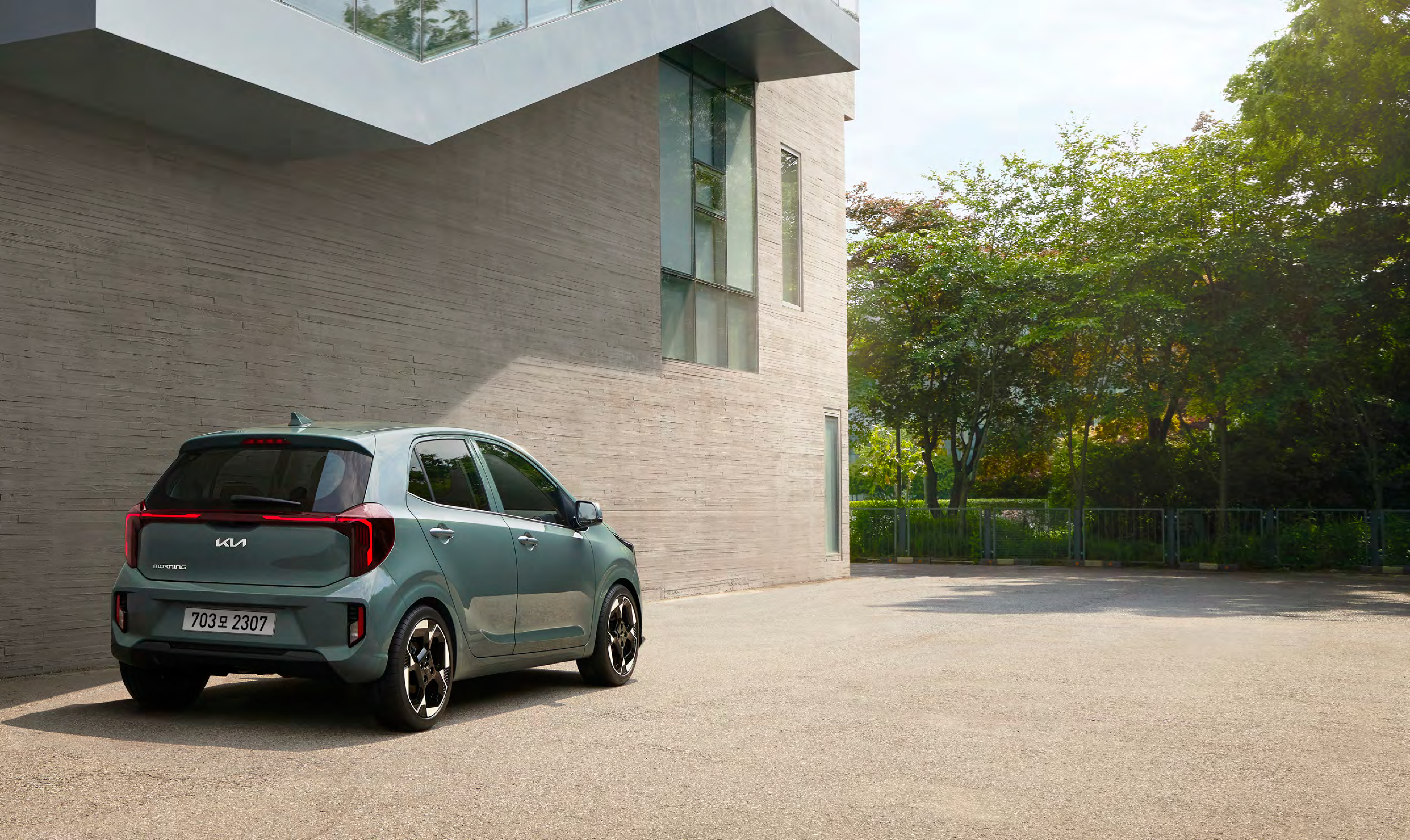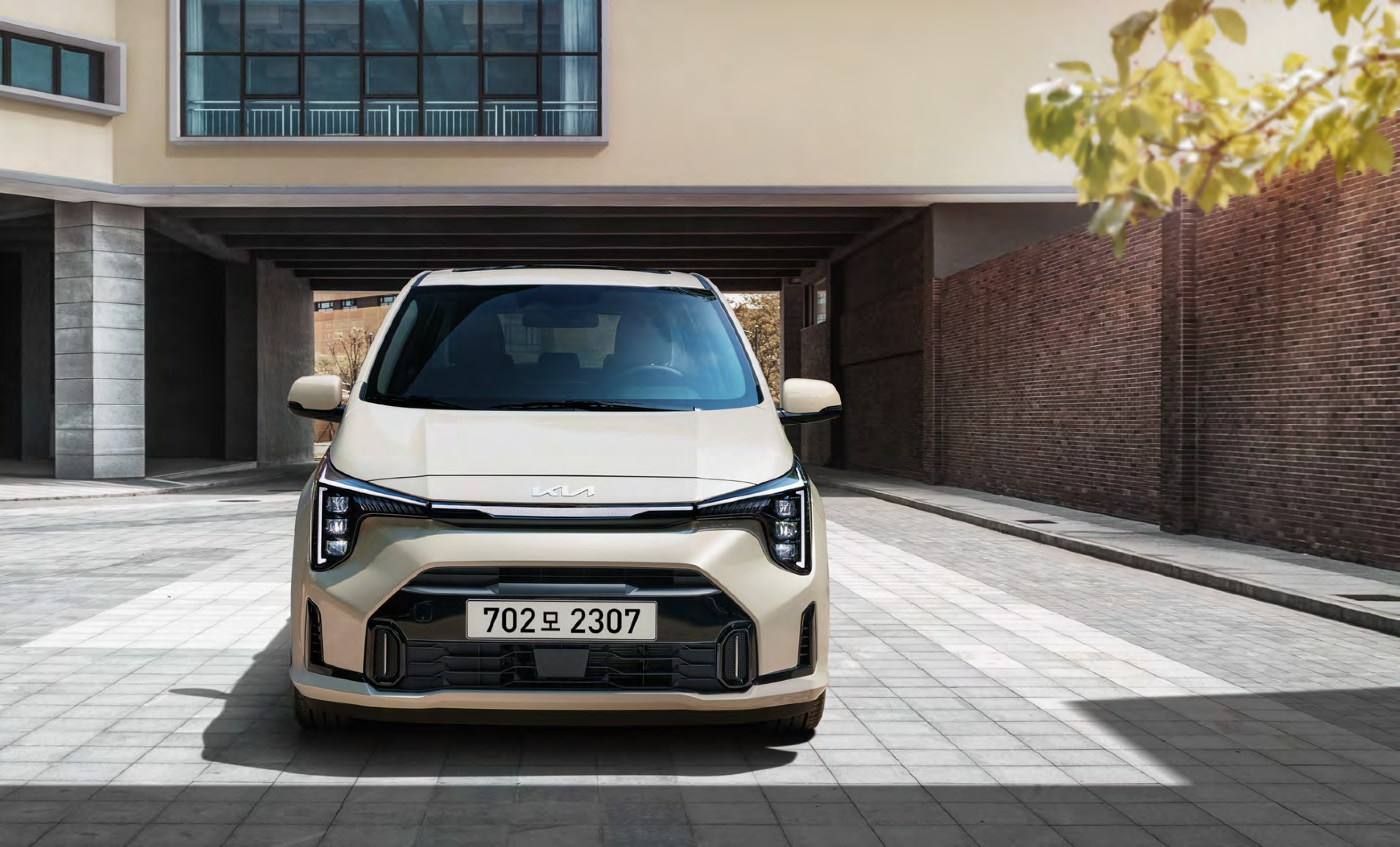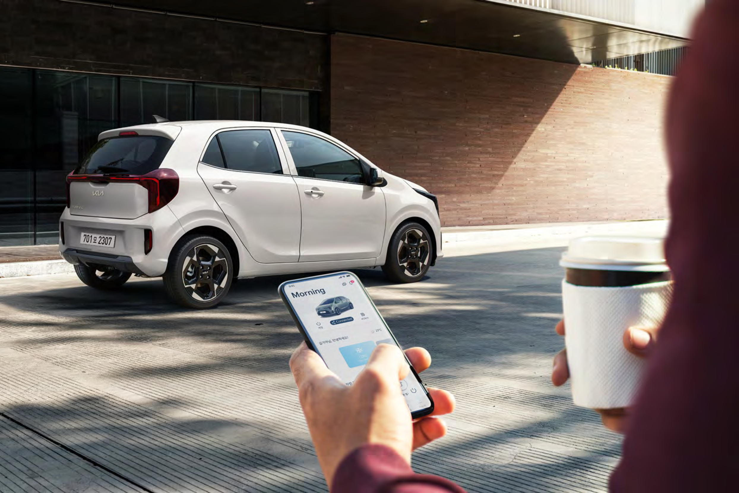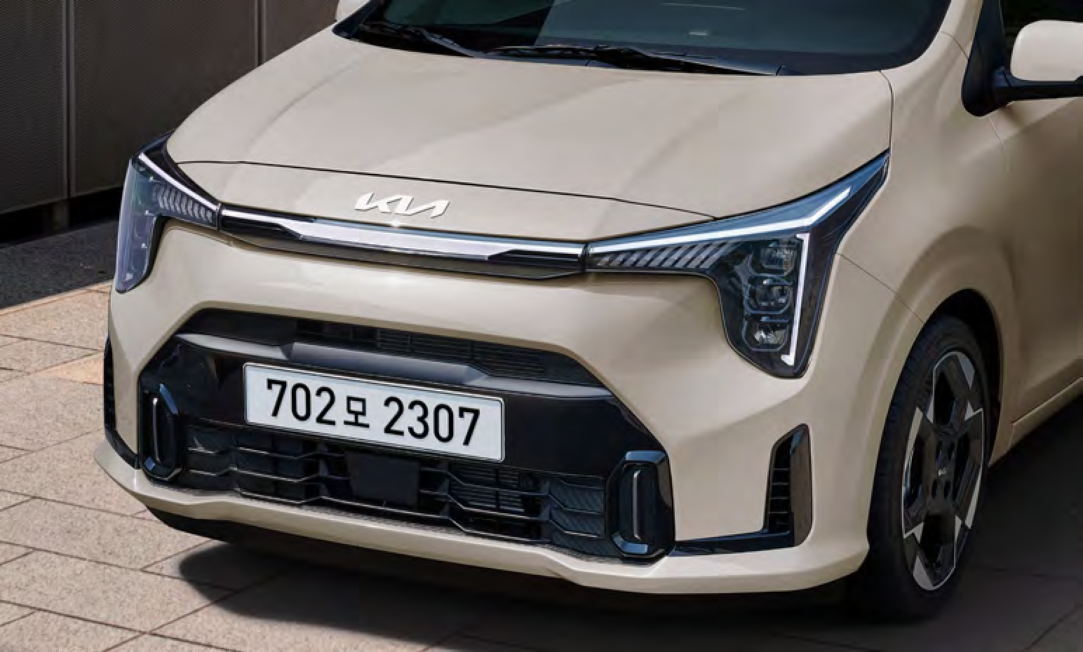 기아 모닝은 세련된 헤드램프와 유선형 바디 디자인으로 도심 주행에서 존재감을 발휘합니다.