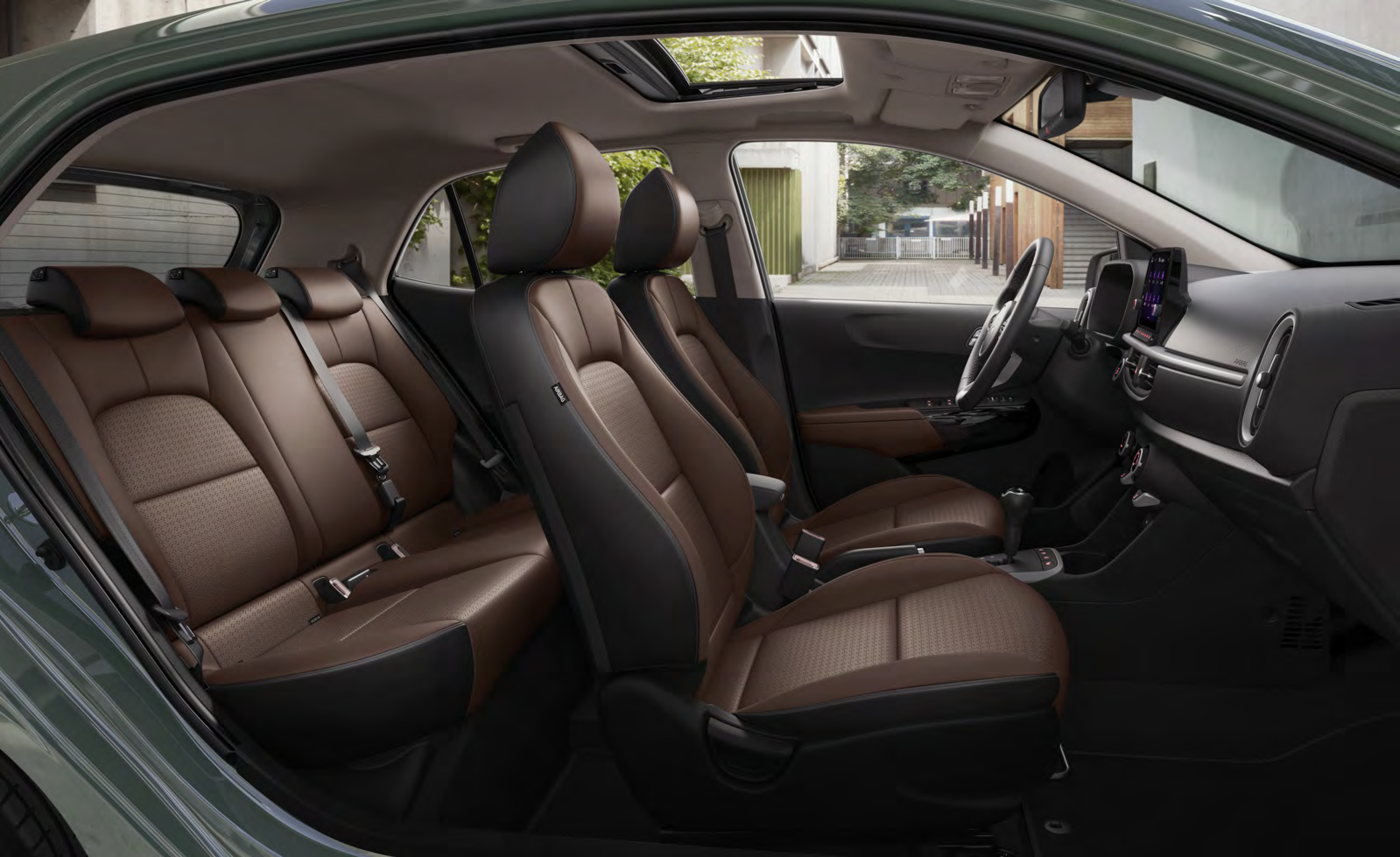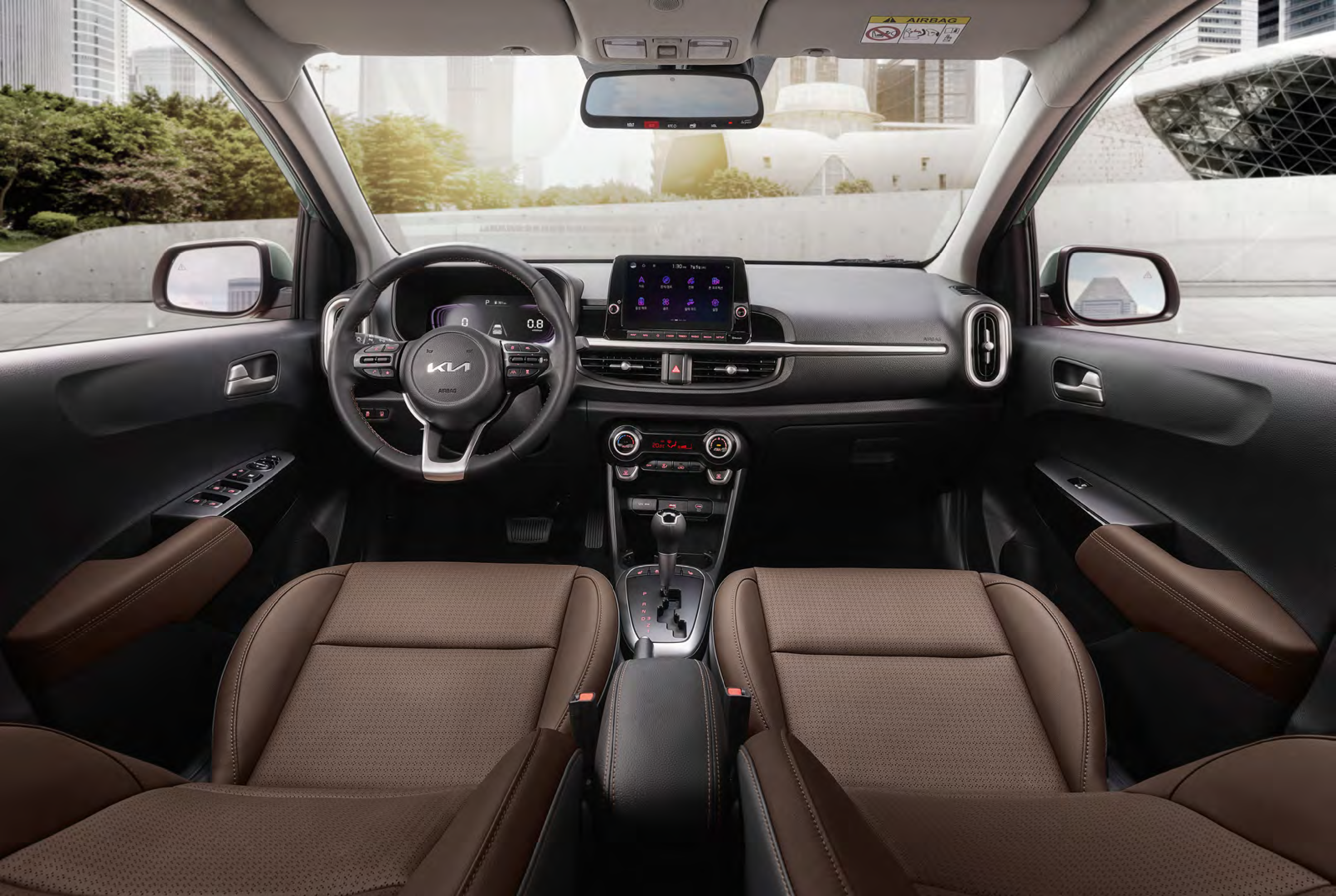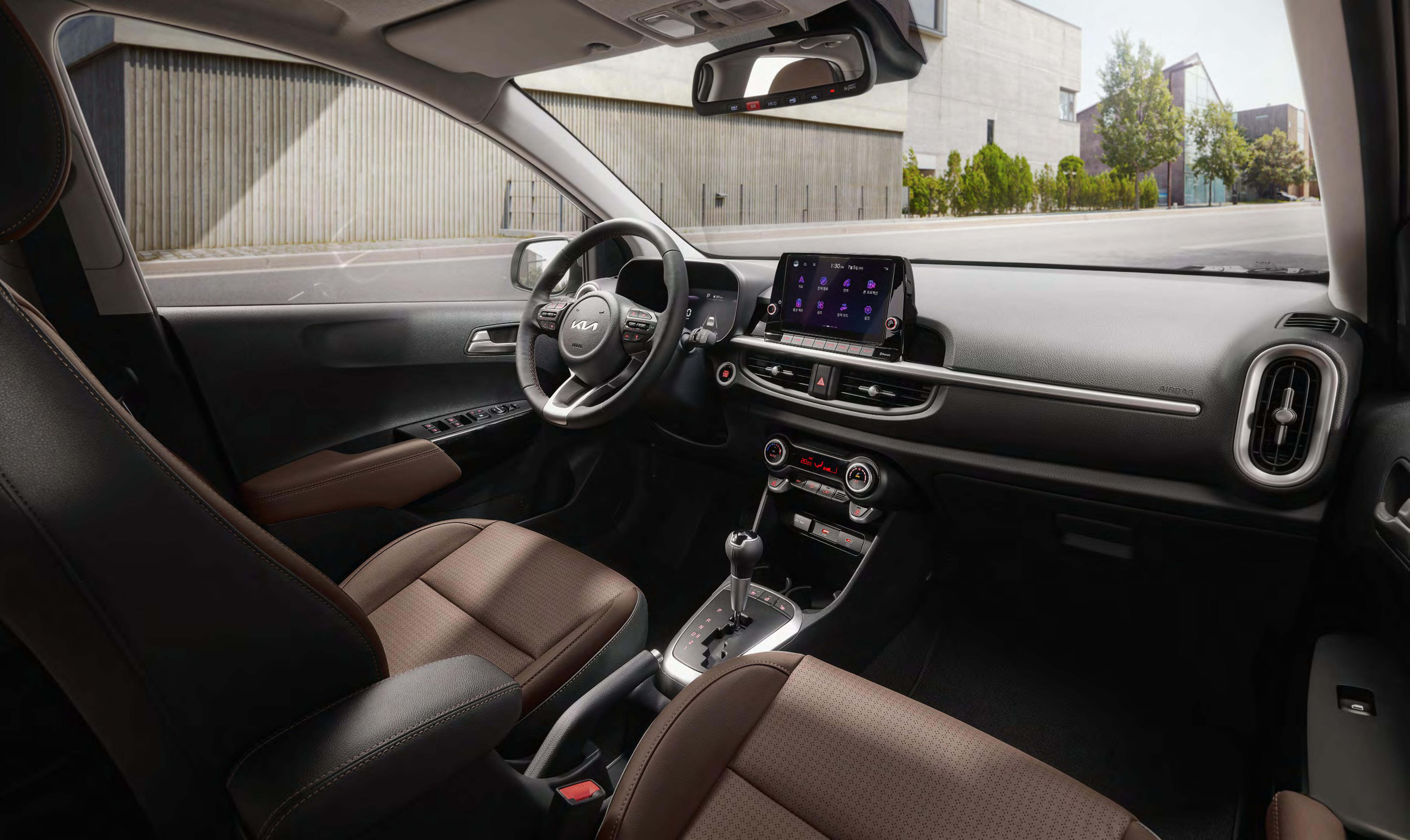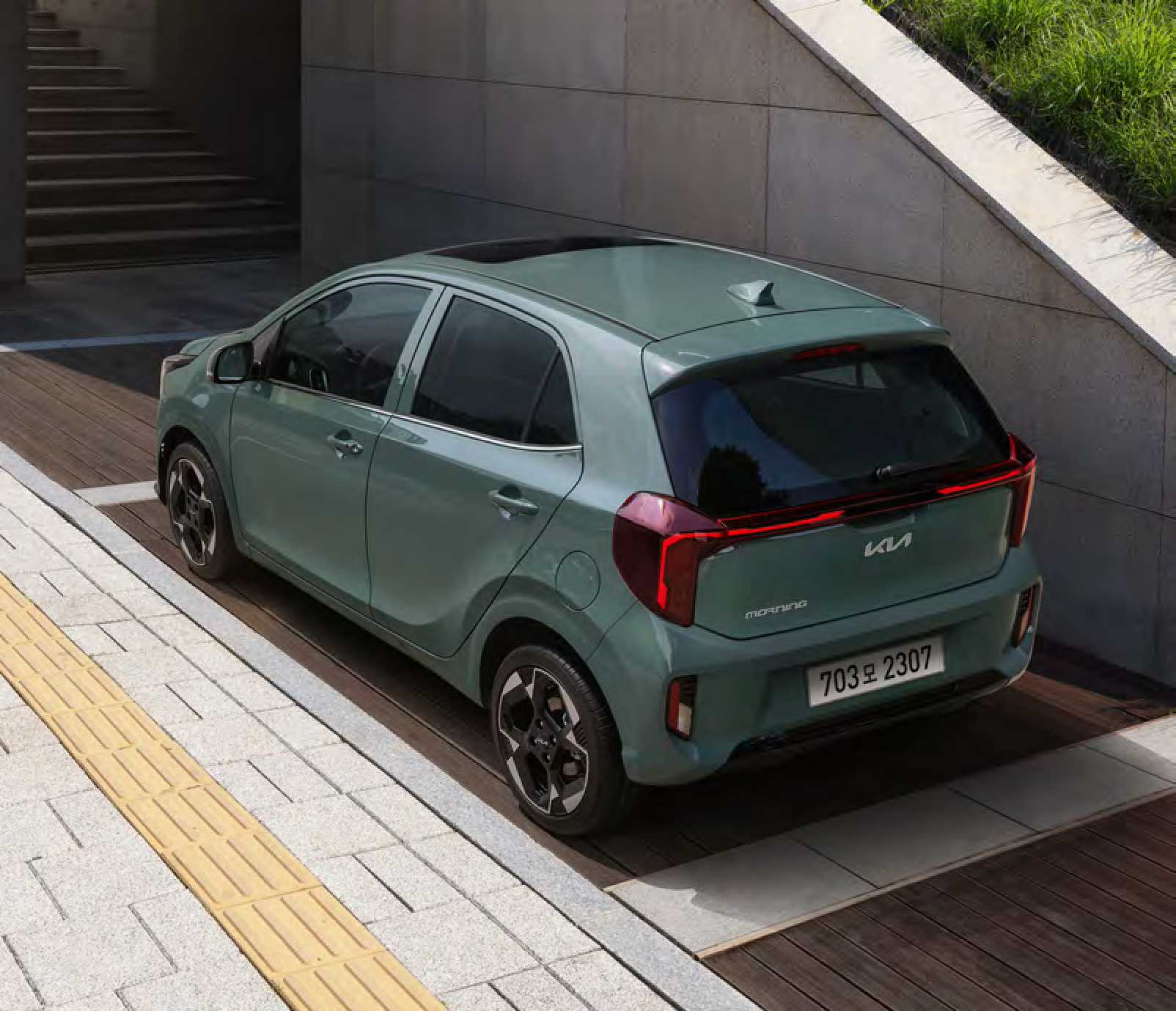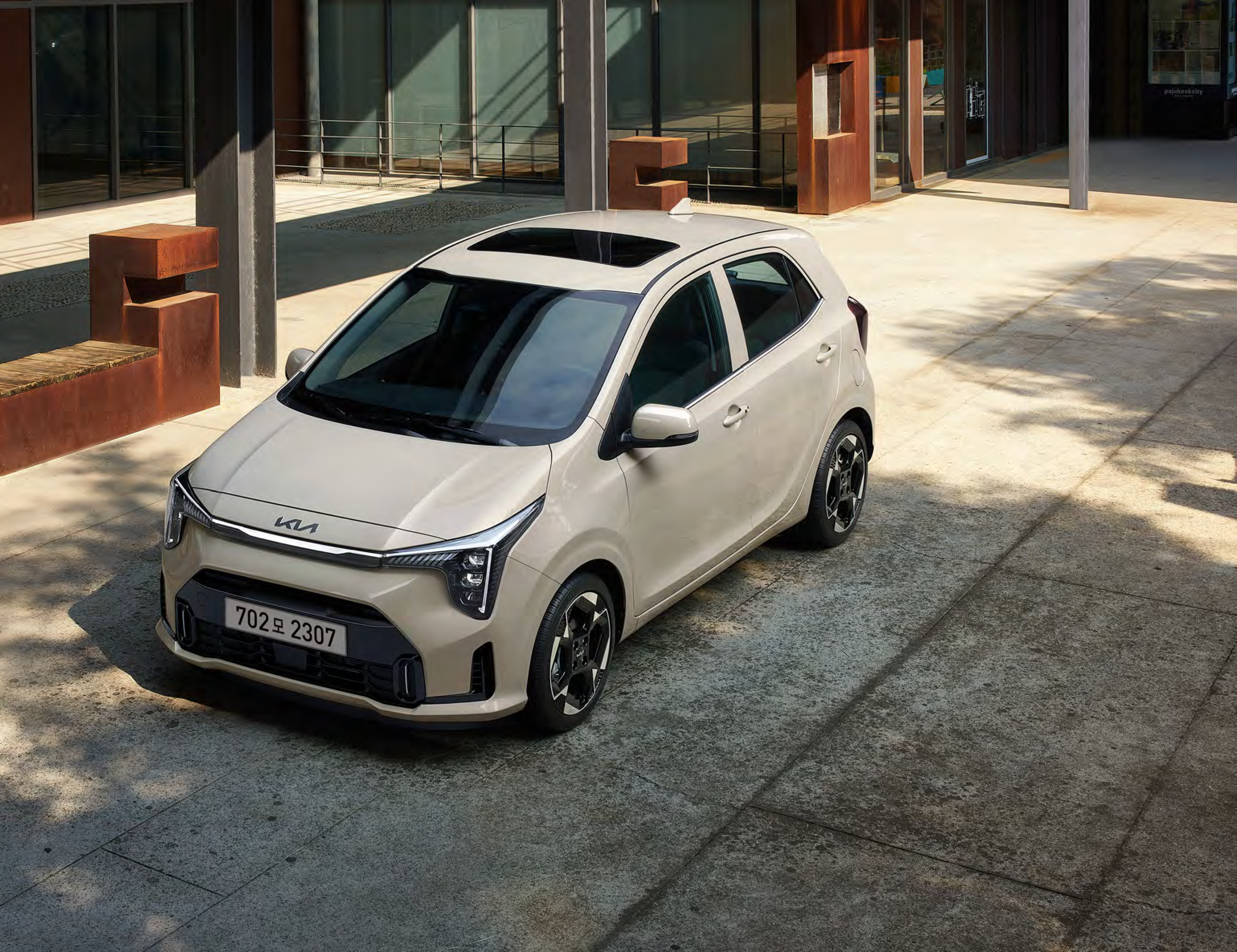 기아 모닝은 세련된 헤드램프와 유선형 바디 디자인으로 도심 주행에서 존재감을 발휘합니다.