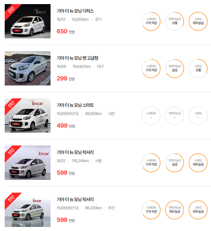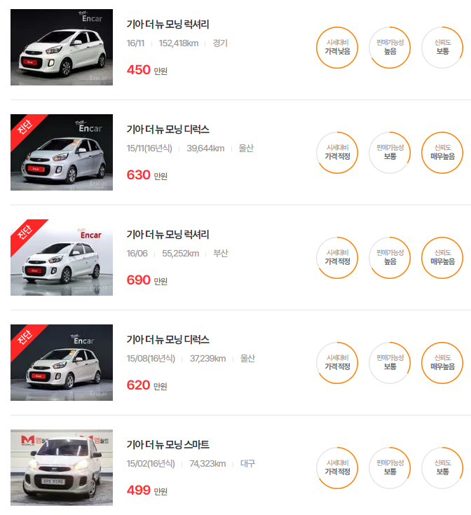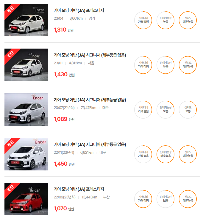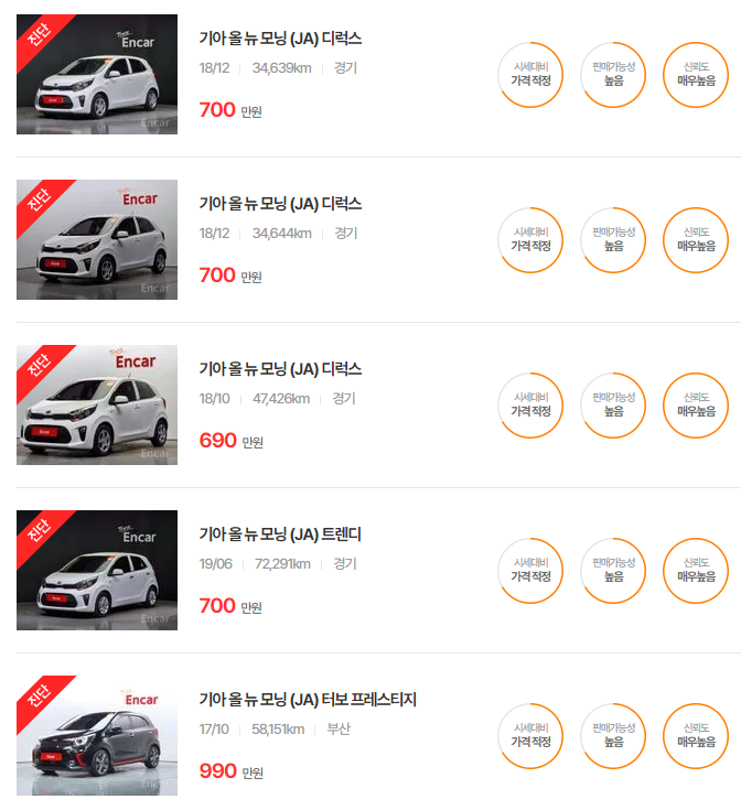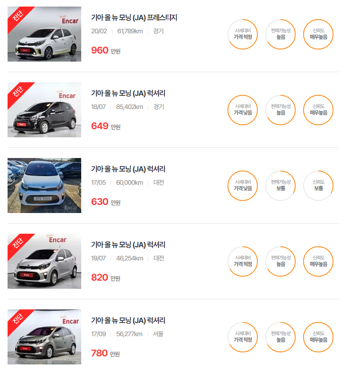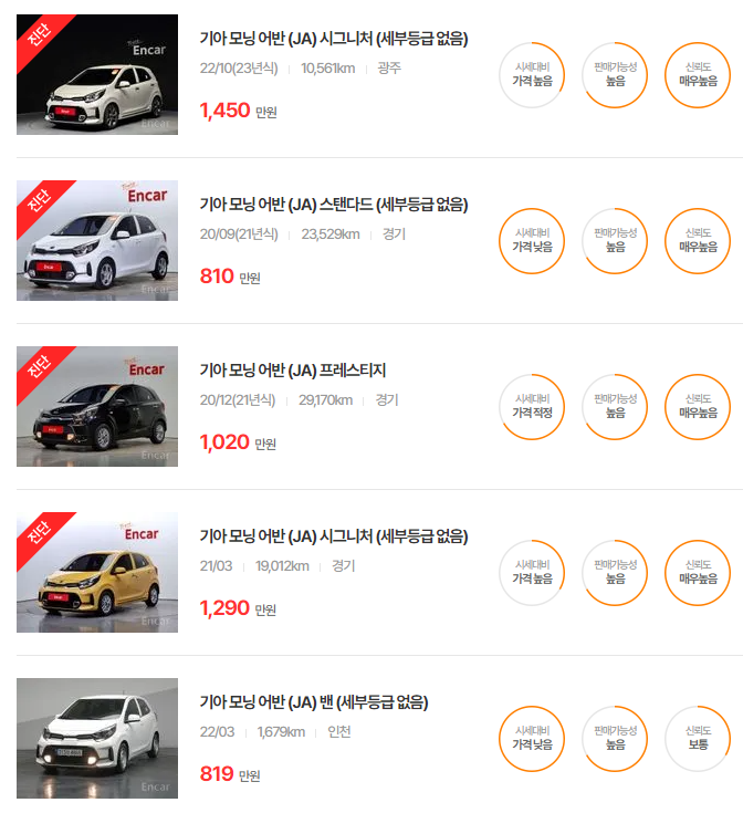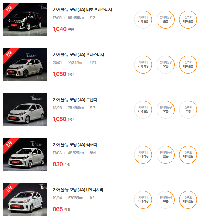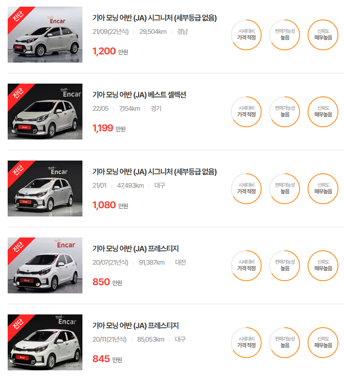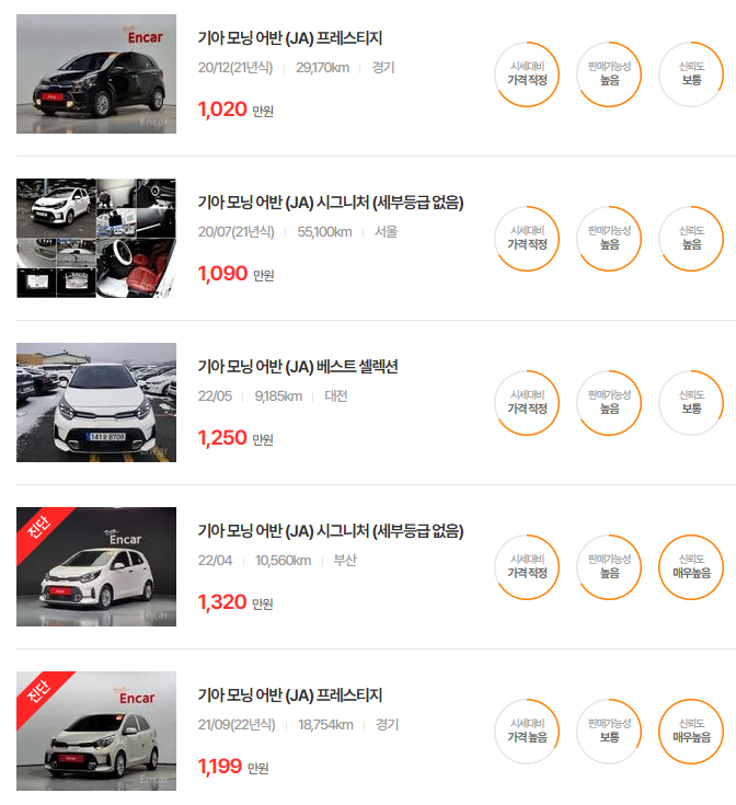 기아 모닝 중고차 가격