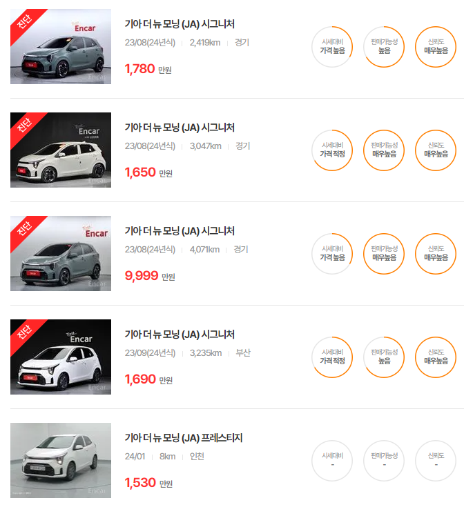 • 2024년식: 1,475~1,534만원 K Car 실매물