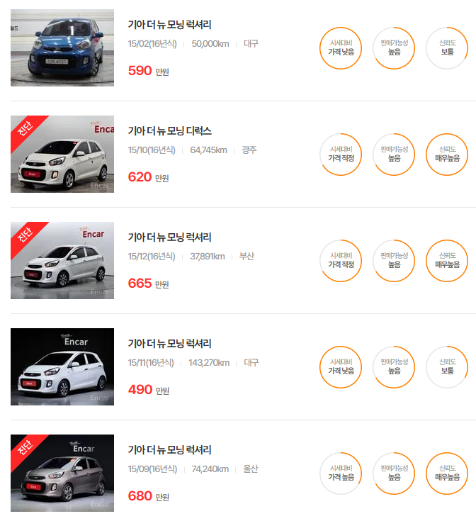 - 2015년식: 541~718만원 K Car 실매물