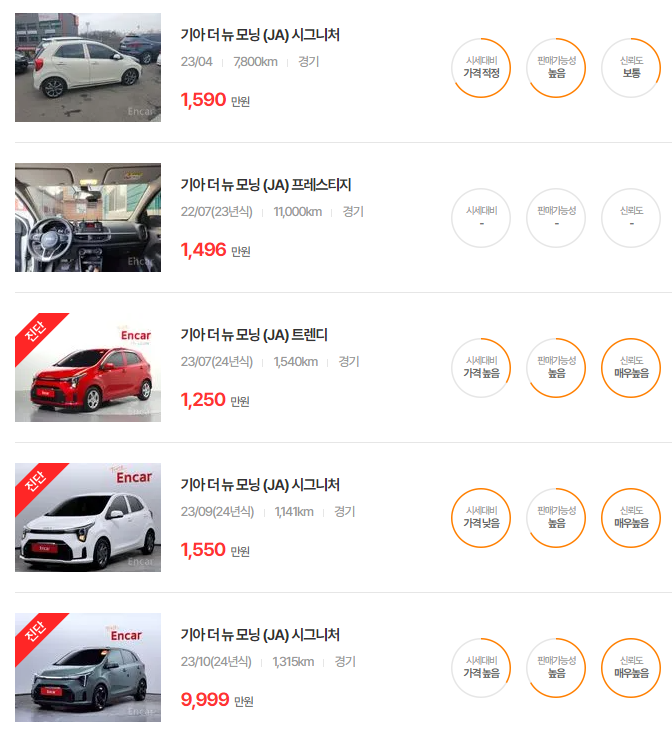 - 2023년식: 1,150~1,590만원 K Car 실매물