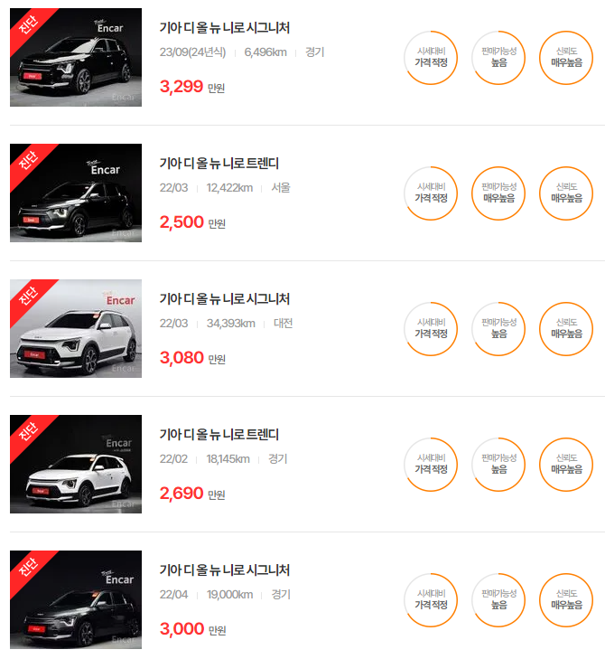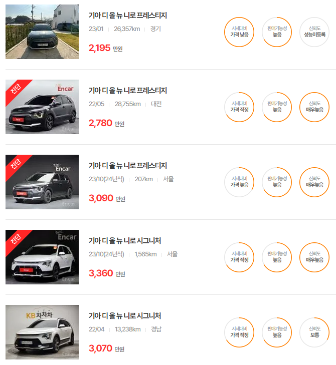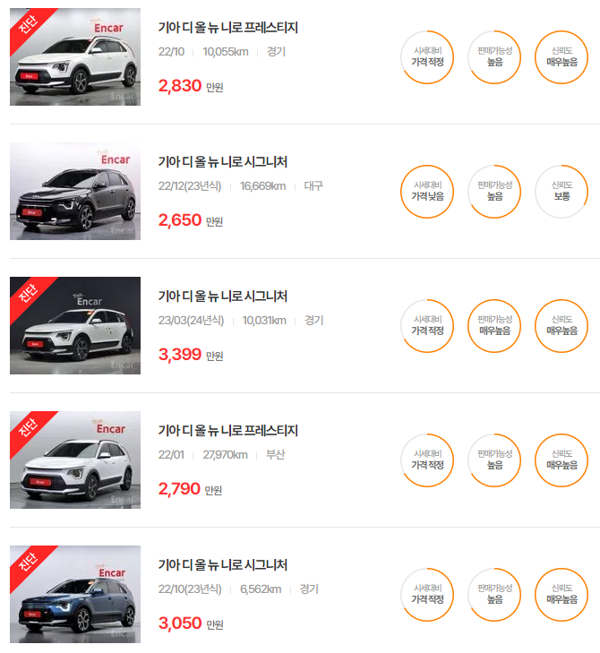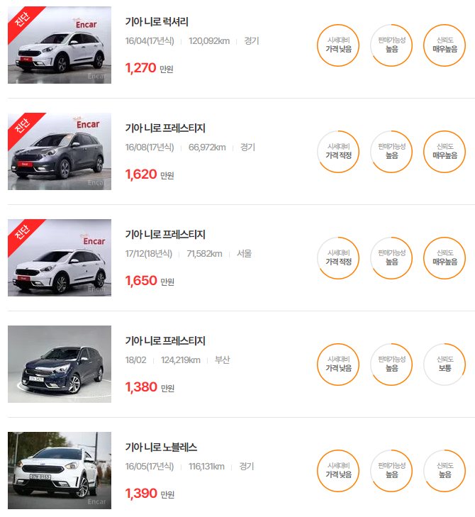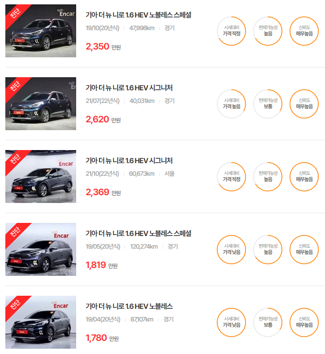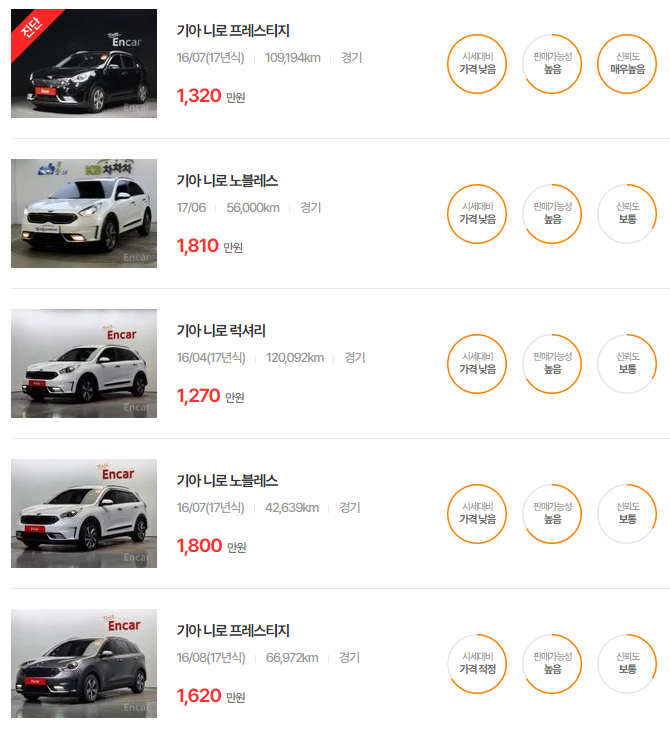 초기 모델인 니로는 중고차 시장에서 여전히 인기 있는 선택으로, 옵션, 주행거리, 연비 등을 종합적으로 고려하는 것이 좋습니다.