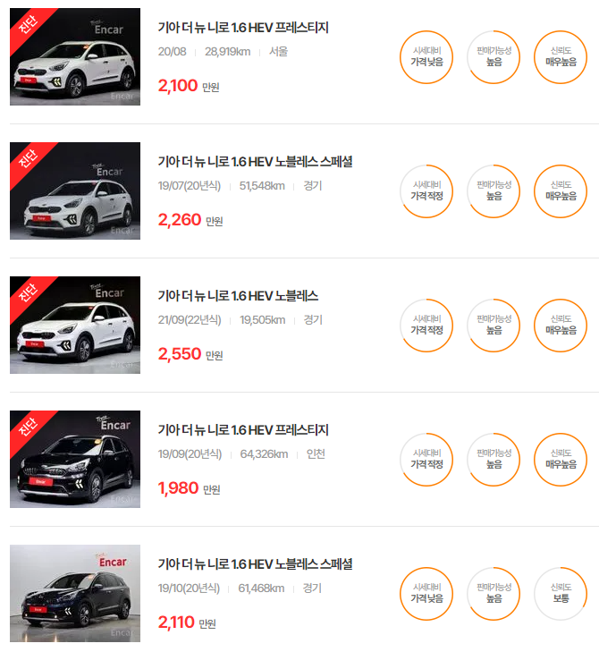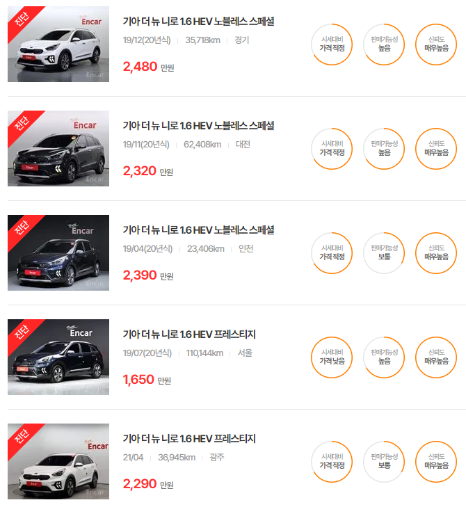 시세 정보는 차량을 구매하거나 판매하기 전 가장 중요한 요소 중 하나입니다. 니로 하이브리드의 중고차 시세를 연식별로 자세히 살펴보겠습니다.