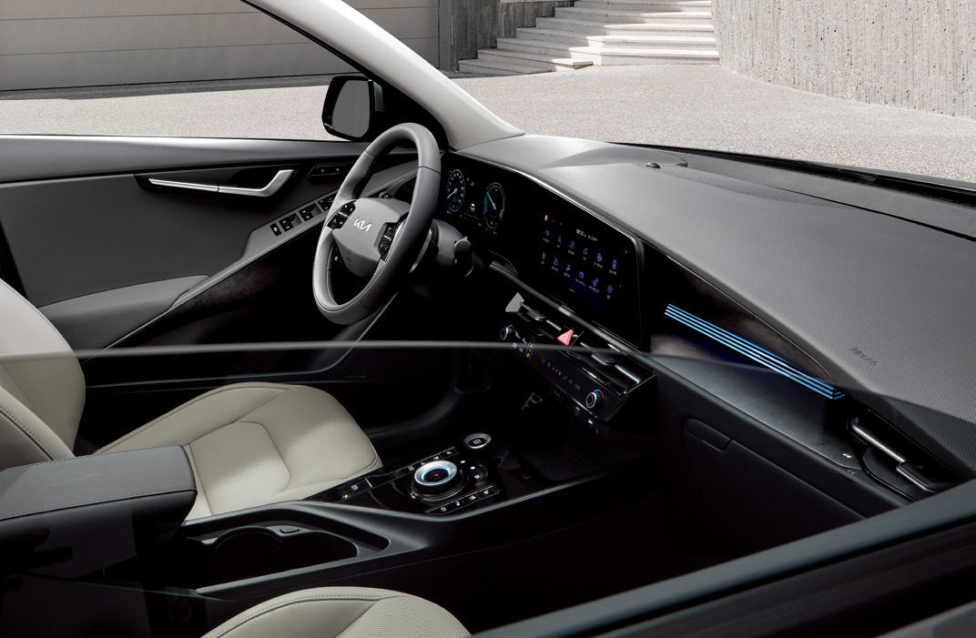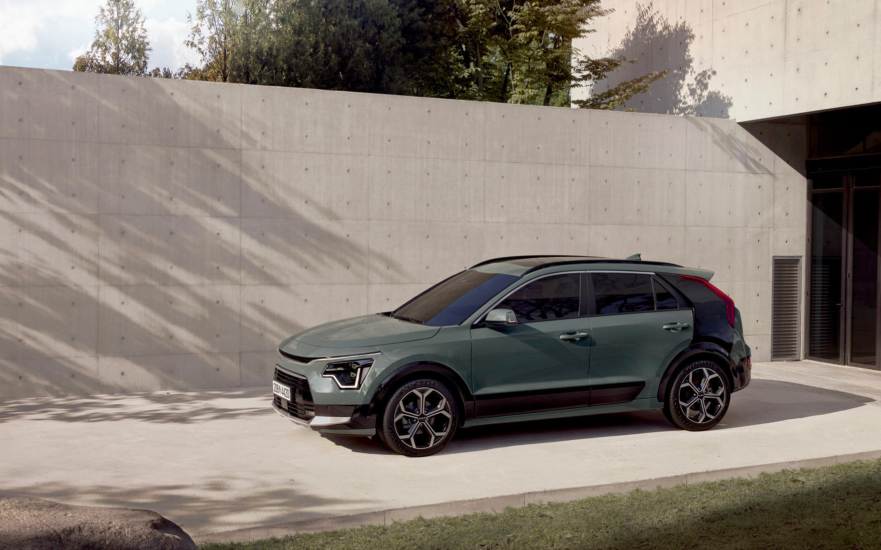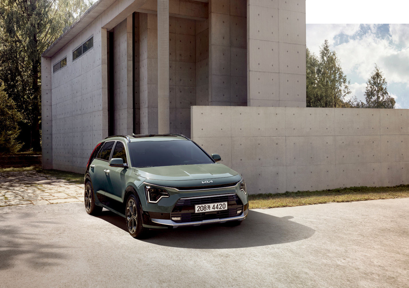 니로 하이브리드는 도시적이고 현대적인 디자인을 자랑합니다. 전면부의 독특한 그릴과 공기역학을 고려한 차체 라인이 특징입니다.