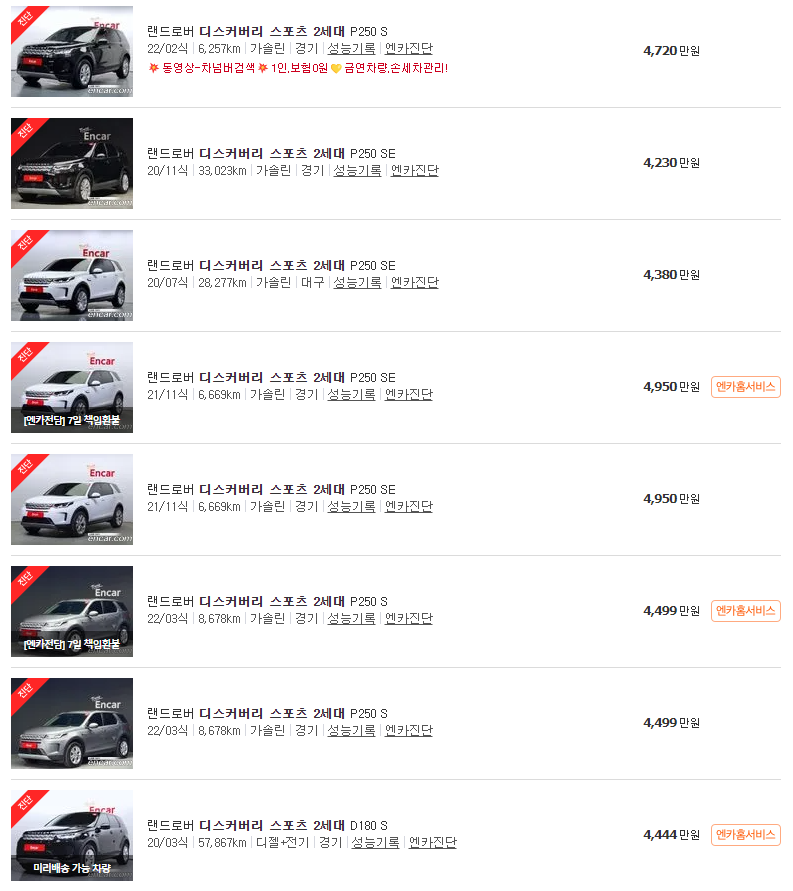 랜드로버 디스커버리는 현대적이고 세련된 디자인과 탁월한 오프로드 능력으로 사랑받는 SUV입니다. 실내는 고급스러운 소재와 첨단 기술이 결합되어 편안함을 제공하며, 뛰어난 엔진 성능으로 도심과 오프로드 모두에서 안정적인 주행을 보장합니다. 이러한 랜드로버 디스커버리의 중고차 시세를 2025년 6월 기준으로 최신 정보로 제공해드립니다.