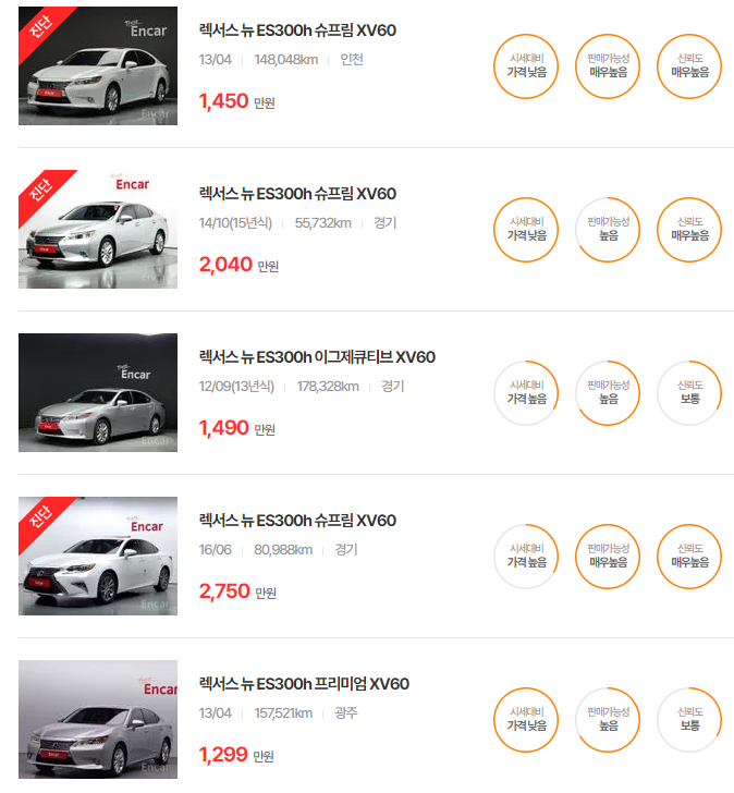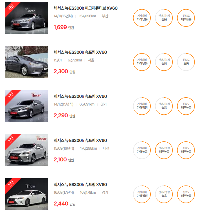 렉서스 ES300h 중고차는 중고차 가격, 연식별 시세, 차량 유지비를 모두 고려할 때 매우 매력적인 선택입니다. 이 글이 렉서스 ES300h 중고차를 고려하시는 데 도움이 되었길 바랍니다.