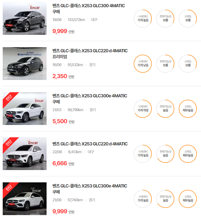벤츠 GLC 중고차 가격 시세표