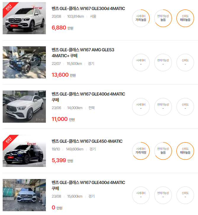 더불어, 현재 차량과 비교할 만한 모델에 대한 정보를 아래에서 확인해보세요. 벤츠 GLE클래스와 유사한 벤츠 GLC클래스 중고차 가격은 아래에서 확인할 수 있습니다.