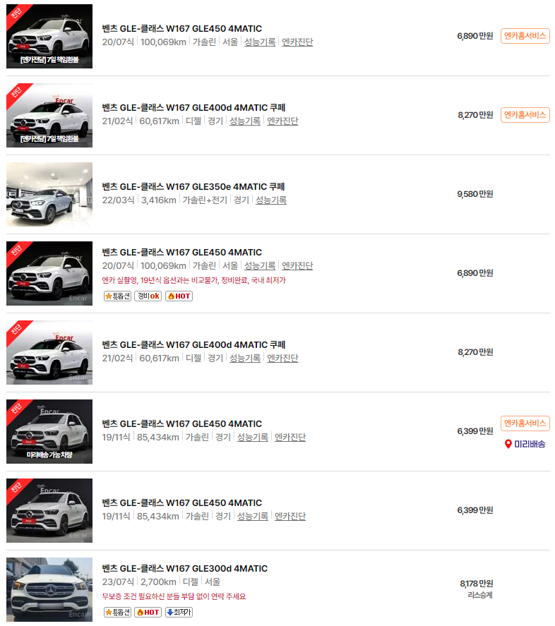 본 글이 벤츠 GLE클래스의 중고차 구매 시 고려해야 할 중고차 가격, 연식별 시세, 그리고 차량 유지비 정보를 파악하는 데 도움이 되었길 바랍니다.