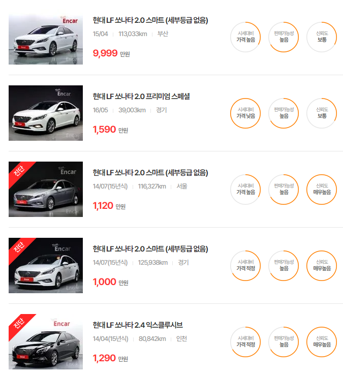 현대 쏘나타 중고차 가격