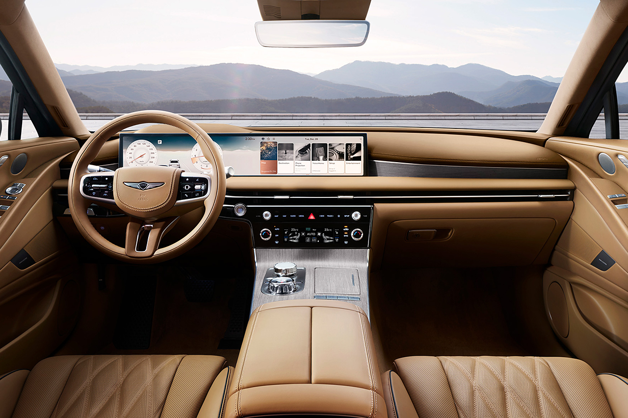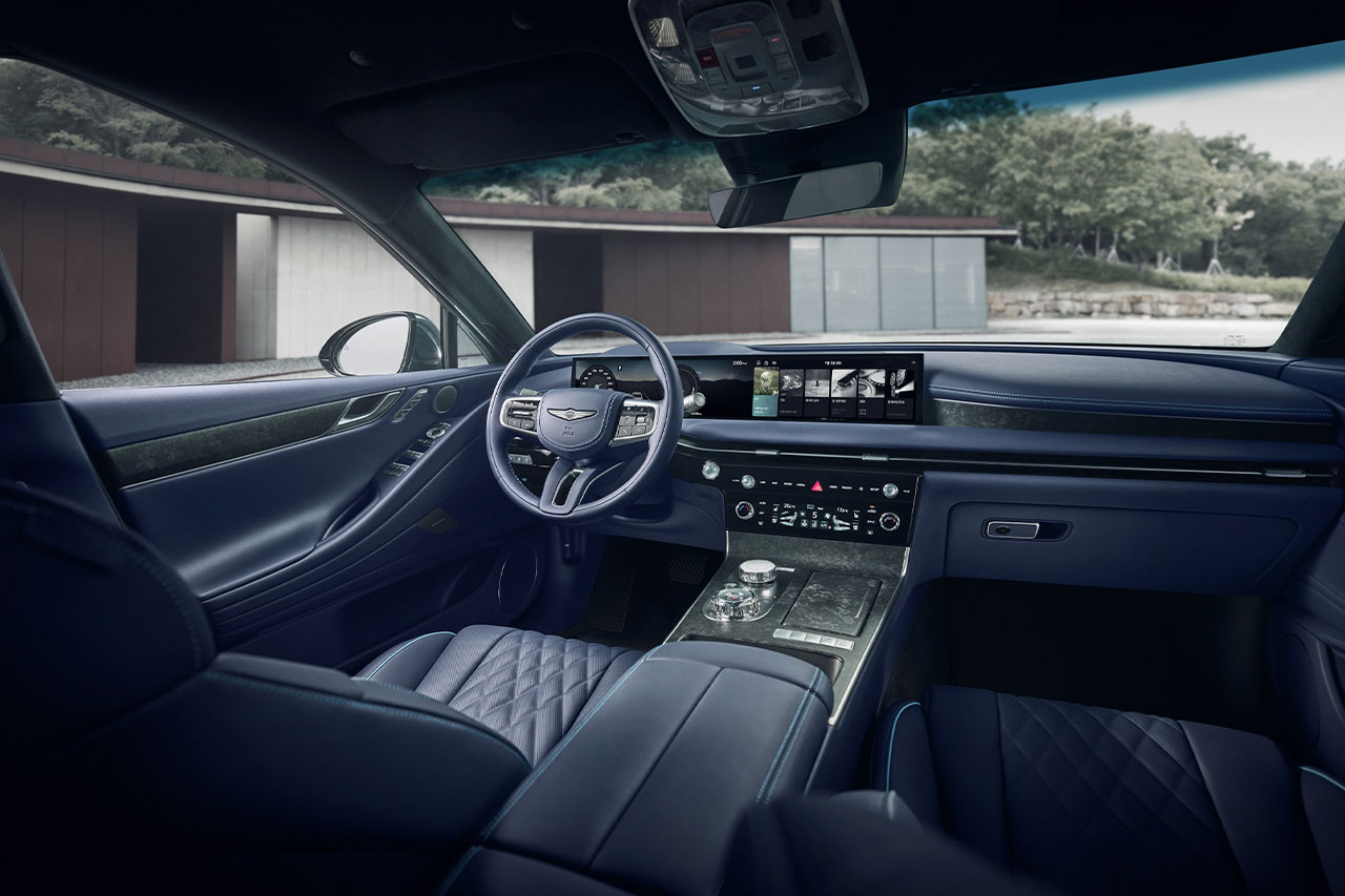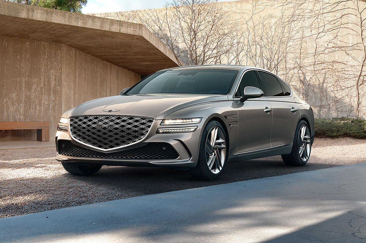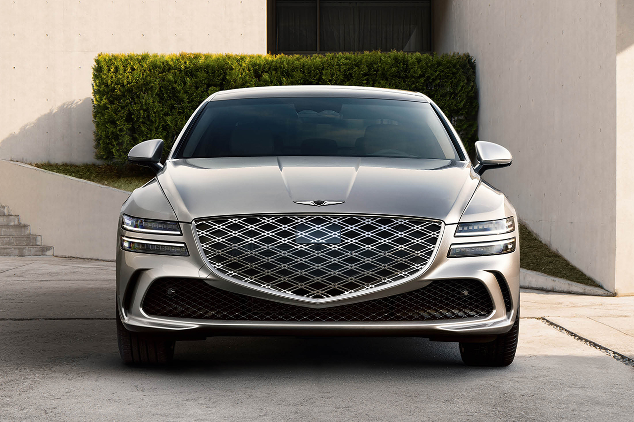 제네시스 G80은 세련된 크롬 그릴과 유려한 차체선으로 고급스러움을 더합니다. 이러한 디자인 요소는 차량의 독창성을 강조합니다.