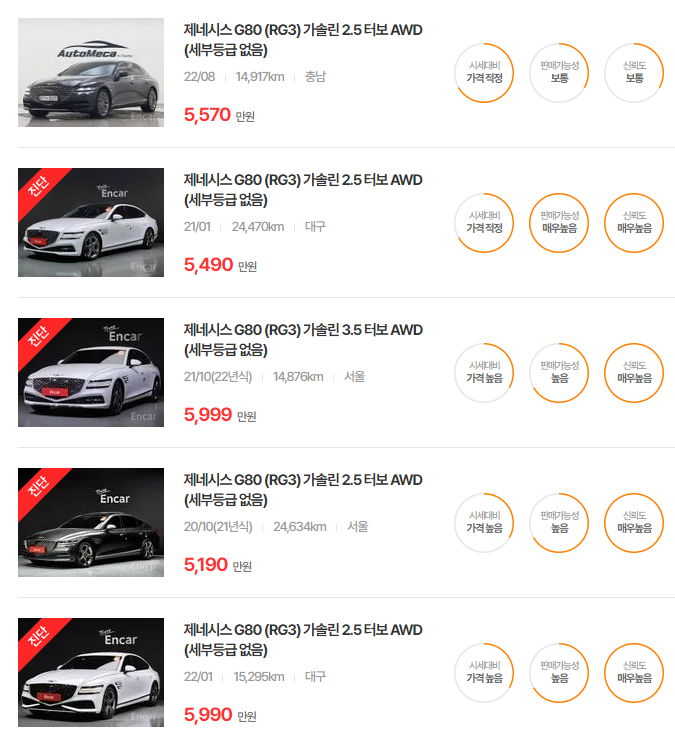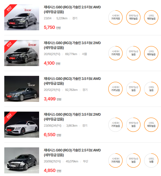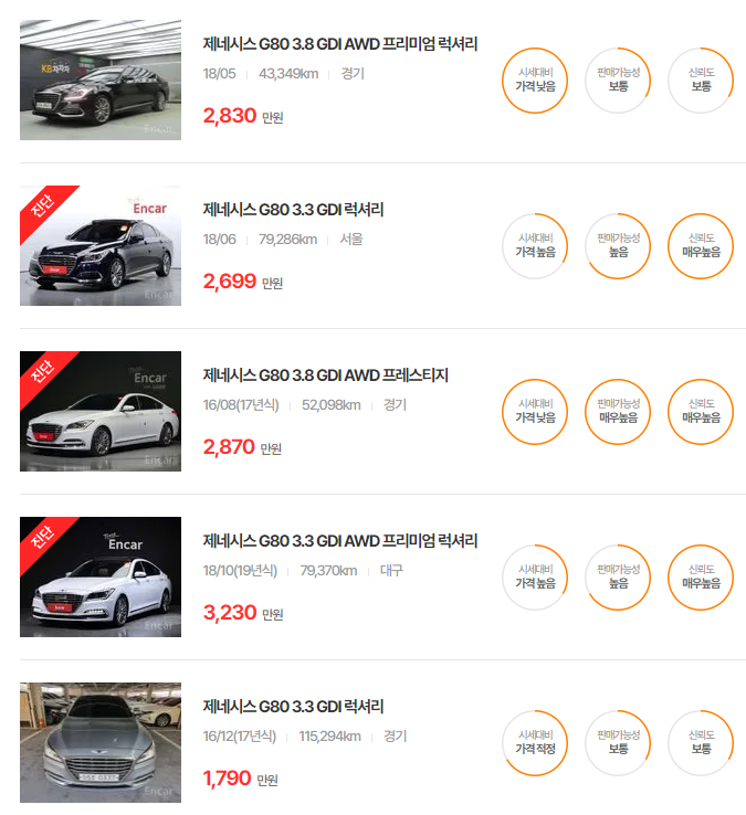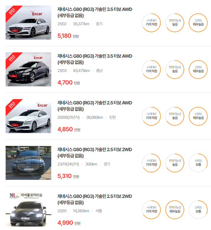 현재 보고 계신 제네시스 G80뿐만 아니라, 비슷한 차량들도 관심이 있으시다면 아래 링크를 참고해보세요: