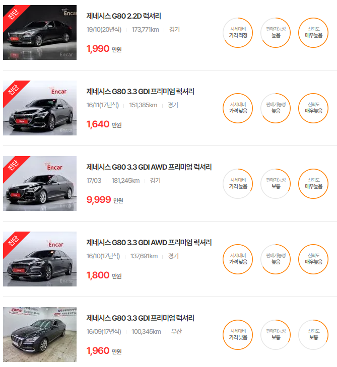 | 제네시스 GV80 중고차 가격 시세표 | 25년 6월 기준 (0) | 2025.06.01 |