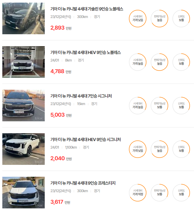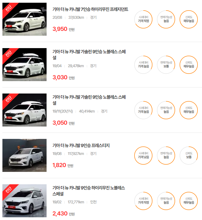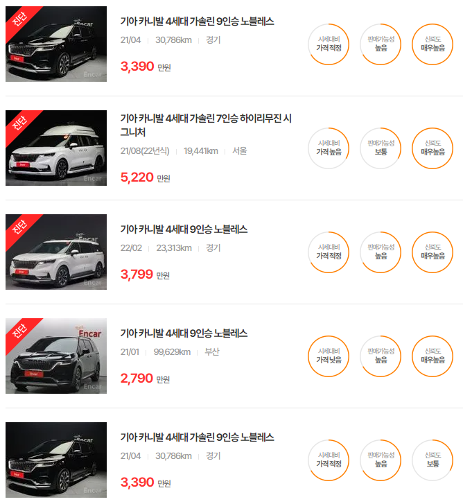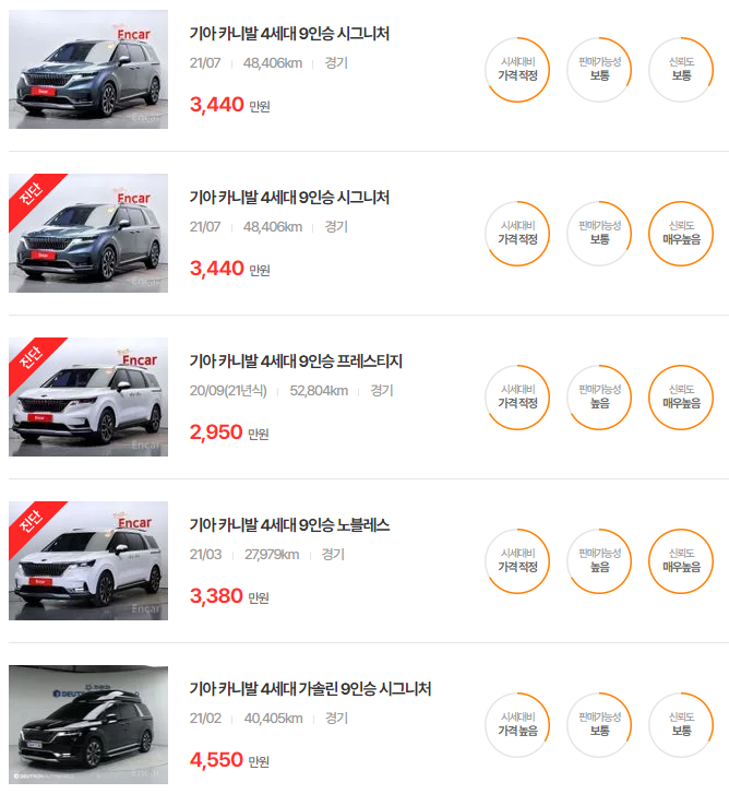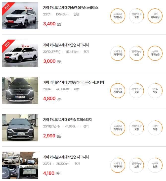 가장 최신 모델부터 이전 모델까지, 다양한 기아 카니발 중고차 시세를 연식별로 알아보겠습니다.