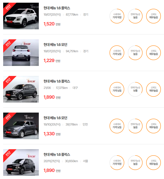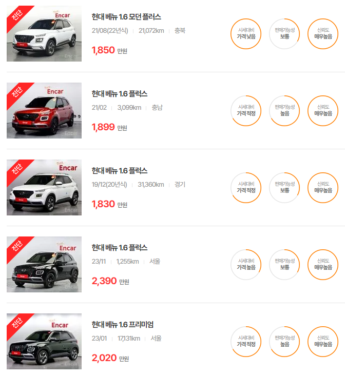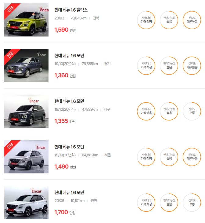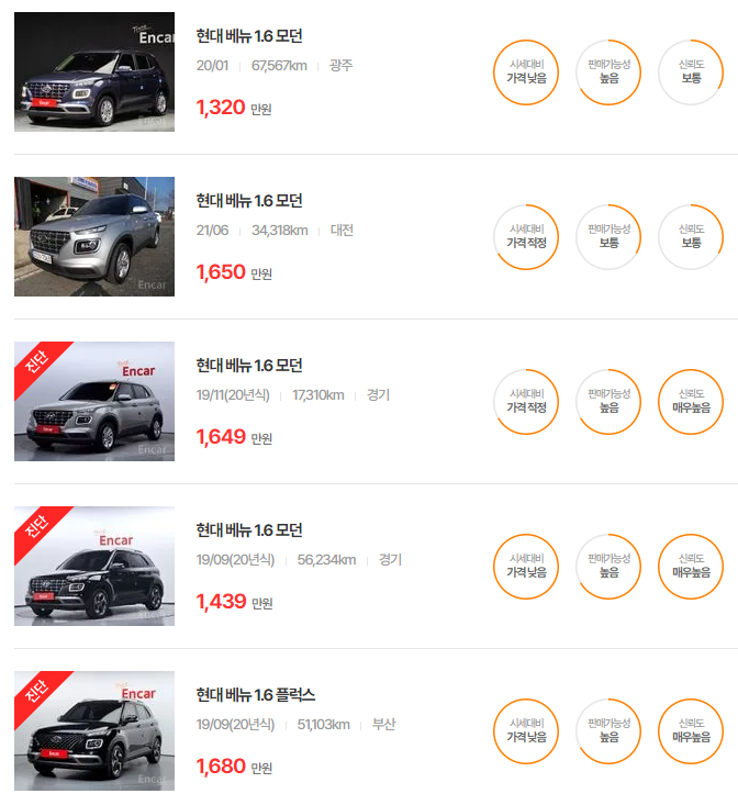 현대 베뉴 중고차 가격