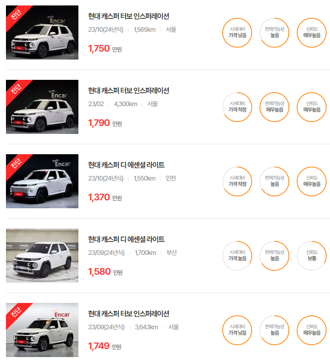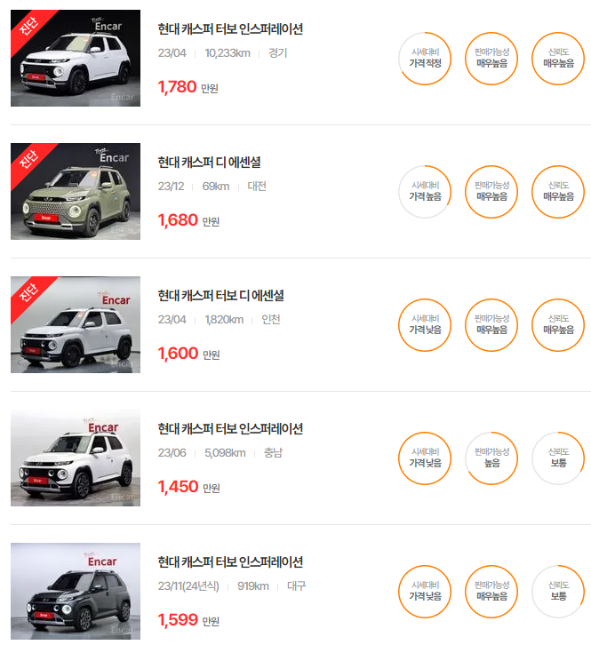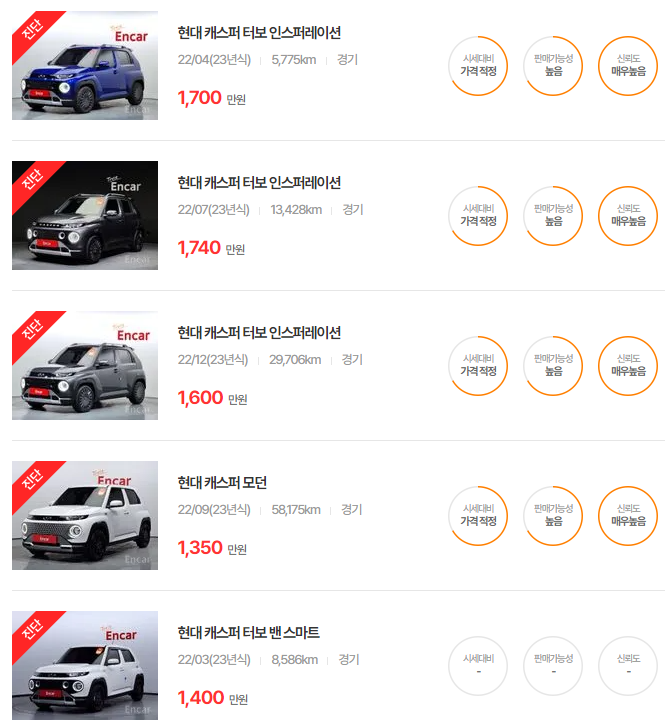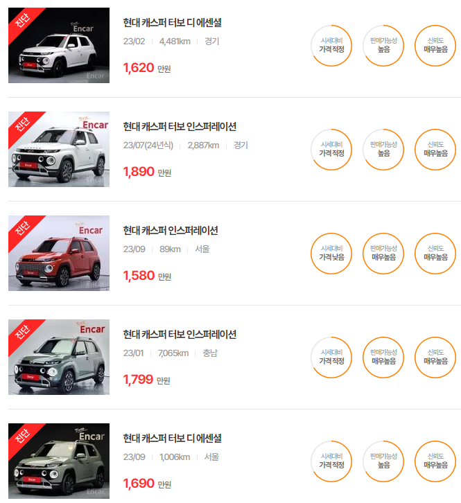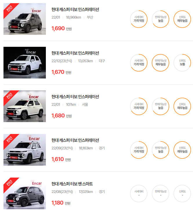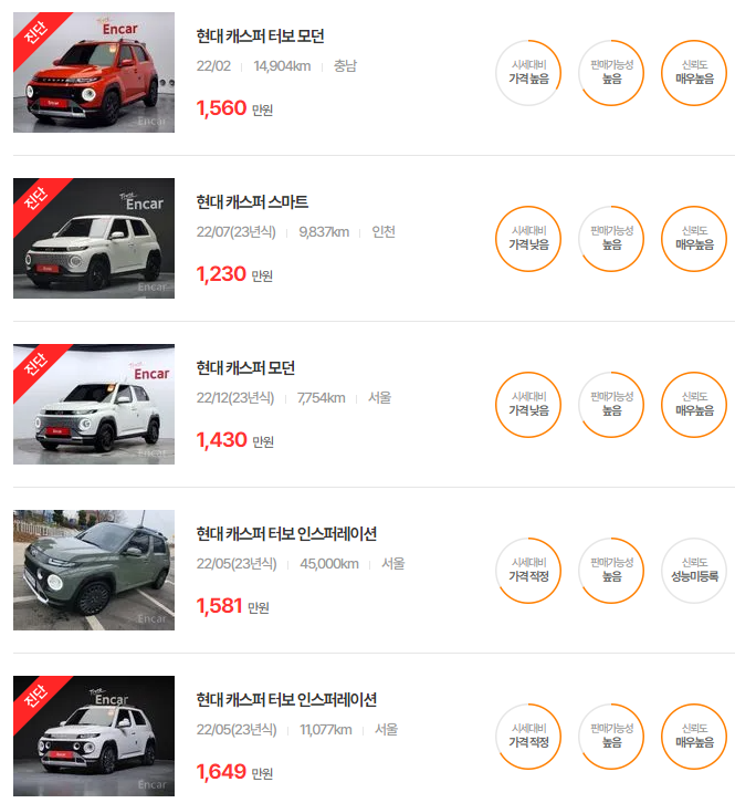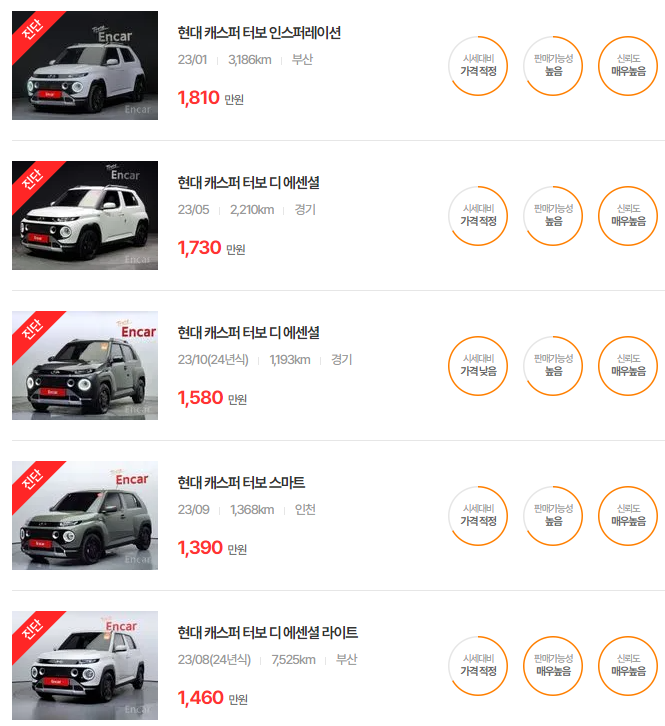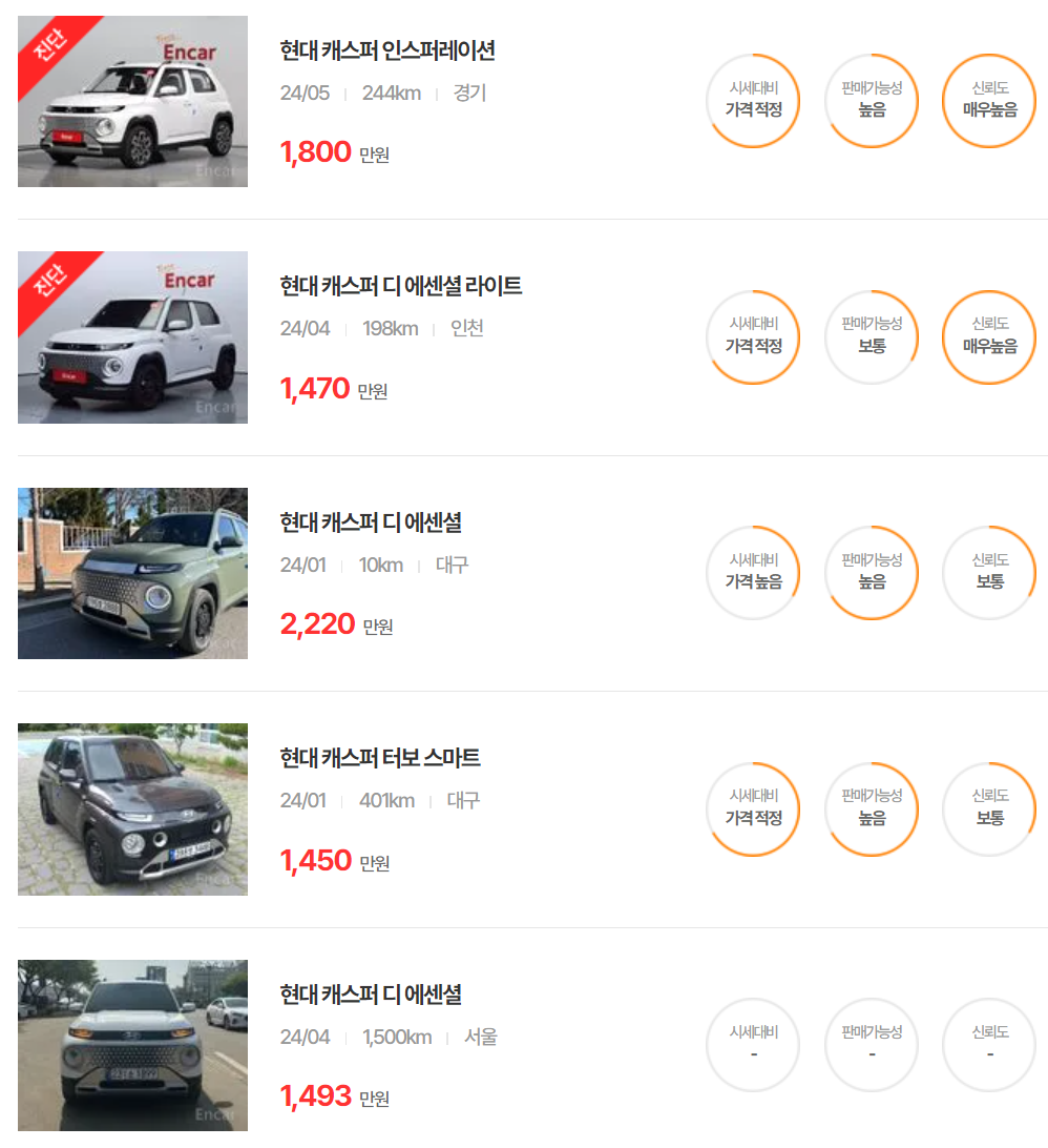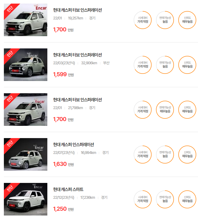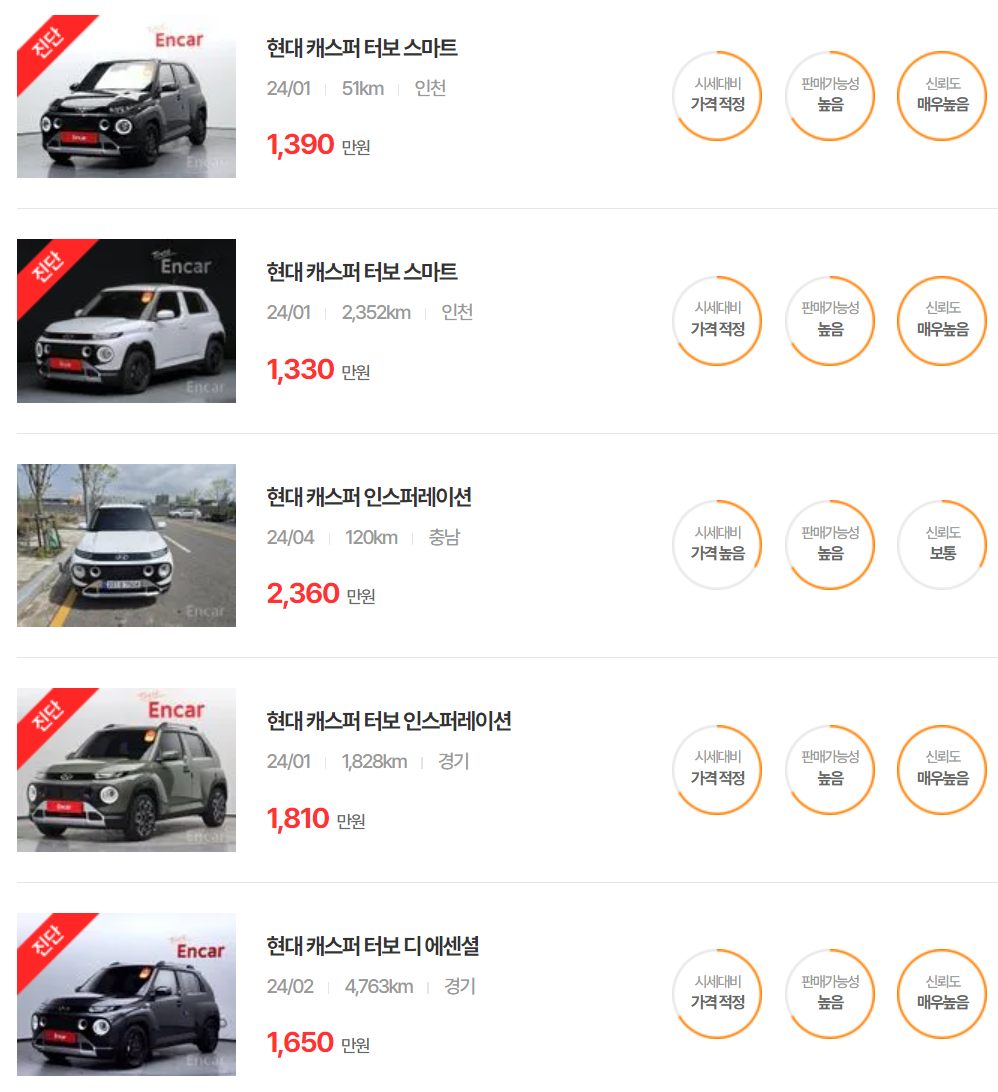 현대 캐스퍼 중고차 가격