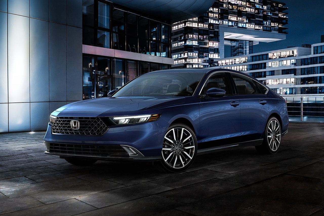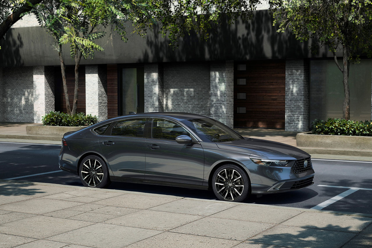 혼다 뉴 어코드 하이브리드는 세련된 프론트 그릴과 날렵한 실루엣이 돋보이며, 대담한 라인이 전체적인 우아함을 살려줍니다.